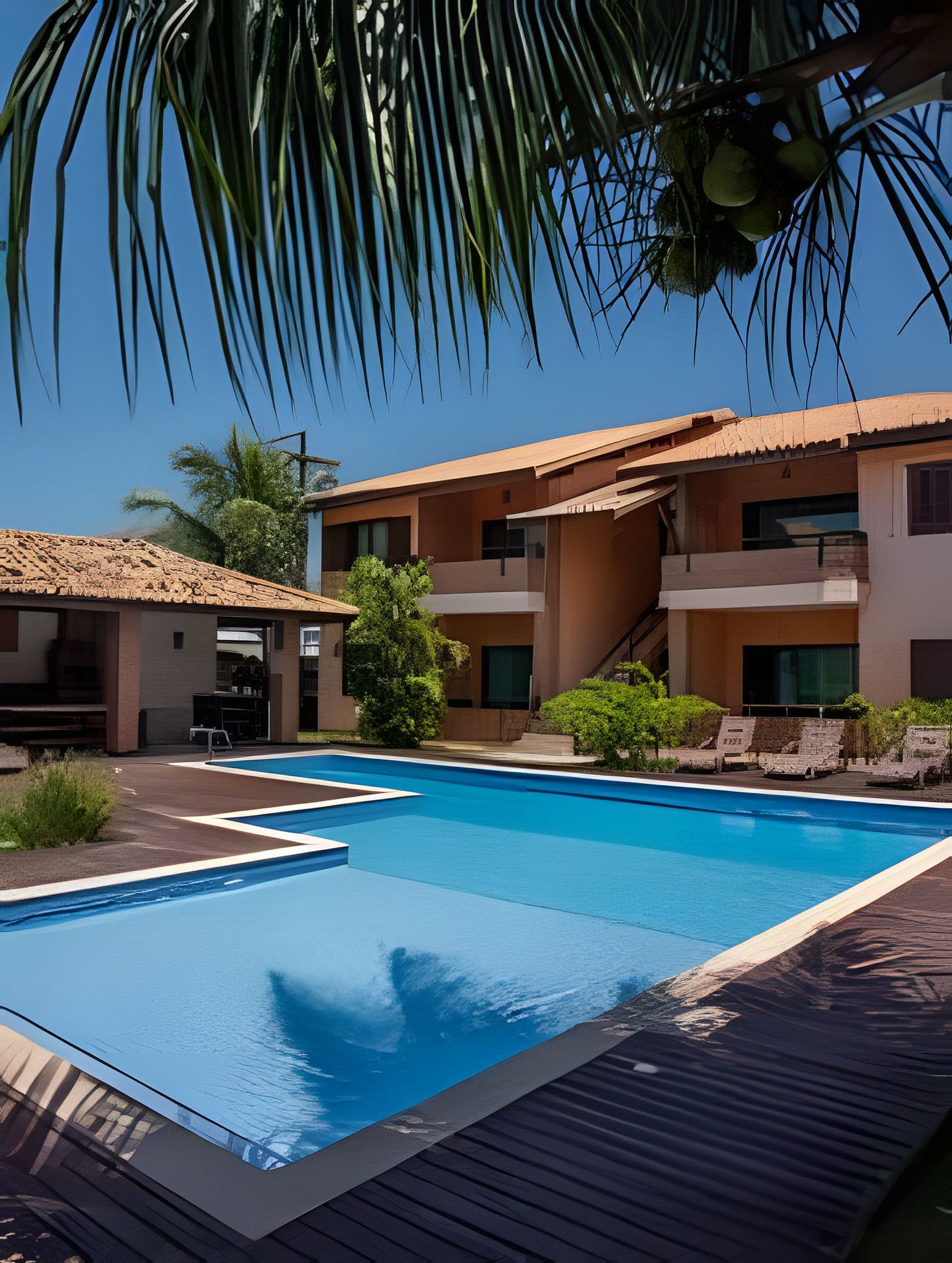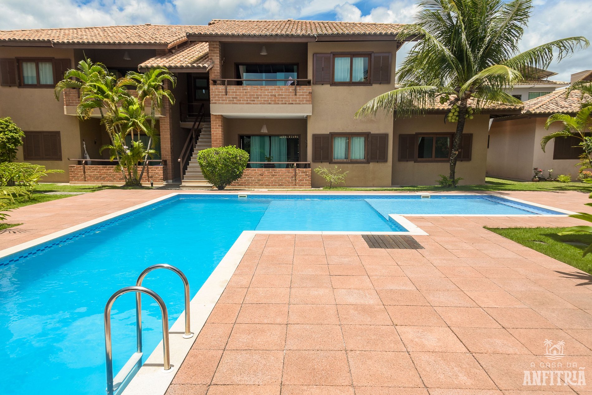 - Varanda com vista para a piscina.